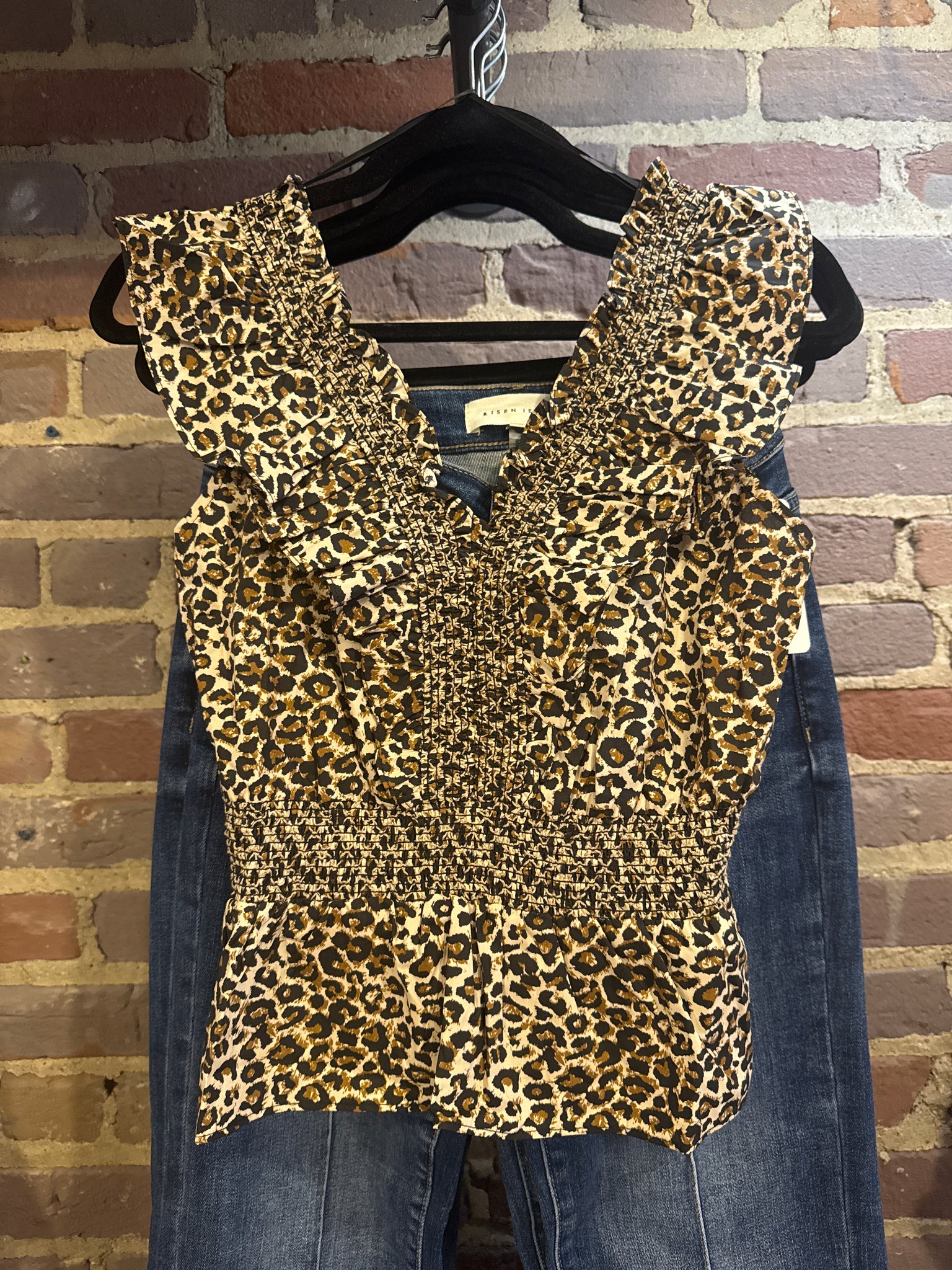 Add a wild touch to your wardrobe with the Well Excuse Me Top. Featuring a playful leopard print, a smocked waist for a flattering fit, and flutter sleeves that create a breezy vibe, this poplin top is as fun as it is stylish. Perfect for effortless days when you want to stand out with a little extra flair.